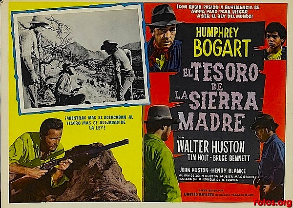 El Tesoro de la Sierra Madre, la magnífica novela de B. Traven, también fue llevada a la pantalla; en la cinta, Humphrey Bogart, Walter Huston, Tim Holt y Bruce Bennet encuentran su tesoro, pero "El Indio" Bedoya les cobra la factura, de una manera trágica.